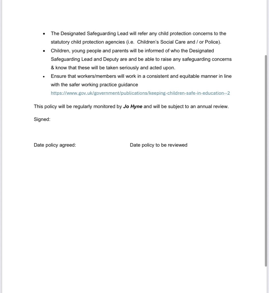Safeguarding Policy Share this: Click to share on X (Opens in new window) X Click to share on Facebook (Opens in new window) Facebook Like Loading...